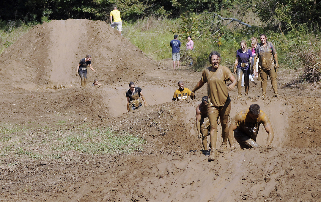 Competitors make their way over muddy hills during the Capitol City River Dash at Capitol View Park. Overall winners got a trophy, while top finishers in age groups won medals.